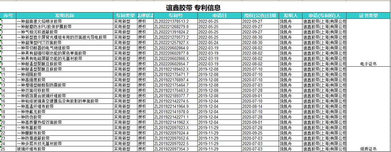 詳情點(diǎn)此下載附件查看.xls),和多所高校及科研單位建立常年密切合作,致力于特殊高溫膠帶的研發(fā)生產(chǎn),多款產(chǎn)品填補(bǔ)國(guó)內(nèi)空白。主營(yíng)全系列耐高溫?zé)釃娡磕z帶、等離子噴涂膠帶、聚四氟乙烯膠帶、聚酰亞胺膠帶,防靜電聚酰亞胺膠帶、高溫接駁膠帶、各種高溫雙面膠帶、耐酸城高溫膠帶等特殊工業(yè)生產(chǎn)的膠粘解決方案。公司產(chǎn)品以替代3M、Tesa、 寺崗、日東、Permace |等知名膠帶為主,為特殊工業(yè)膠帶國(guó)產(chǎn)化做出一定貢獻(xiàn)。誼鑫膠帶實(shí)行完善的現(xiàn)代化管理制度,擁有高素質(zhì)的管理和技術(shù)隊(duì)伍,不斷引進(jìn)先進(jìn)的生產(chǎn)設(shè)備和管理理念,年產(chǎn)各種 膠帶2000萬平米。為了企業(yè)的長(zhǎng)期發(fā)展,公司對(duì)產(chǎn)品的要求是綠色環(huán)保,質(zhì)量精益求精。公司系IS09001: 2008質(zhì)量管理體系認(rèn)證合格單位,產(chǎn)品多項(xiàng)指標(biāo)通過SGS、UL、 CTI及歐盟指令相關(guān)認(rèn)證。